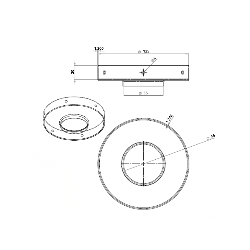 Flasque inox pour silencieux ø125 int GR TECH